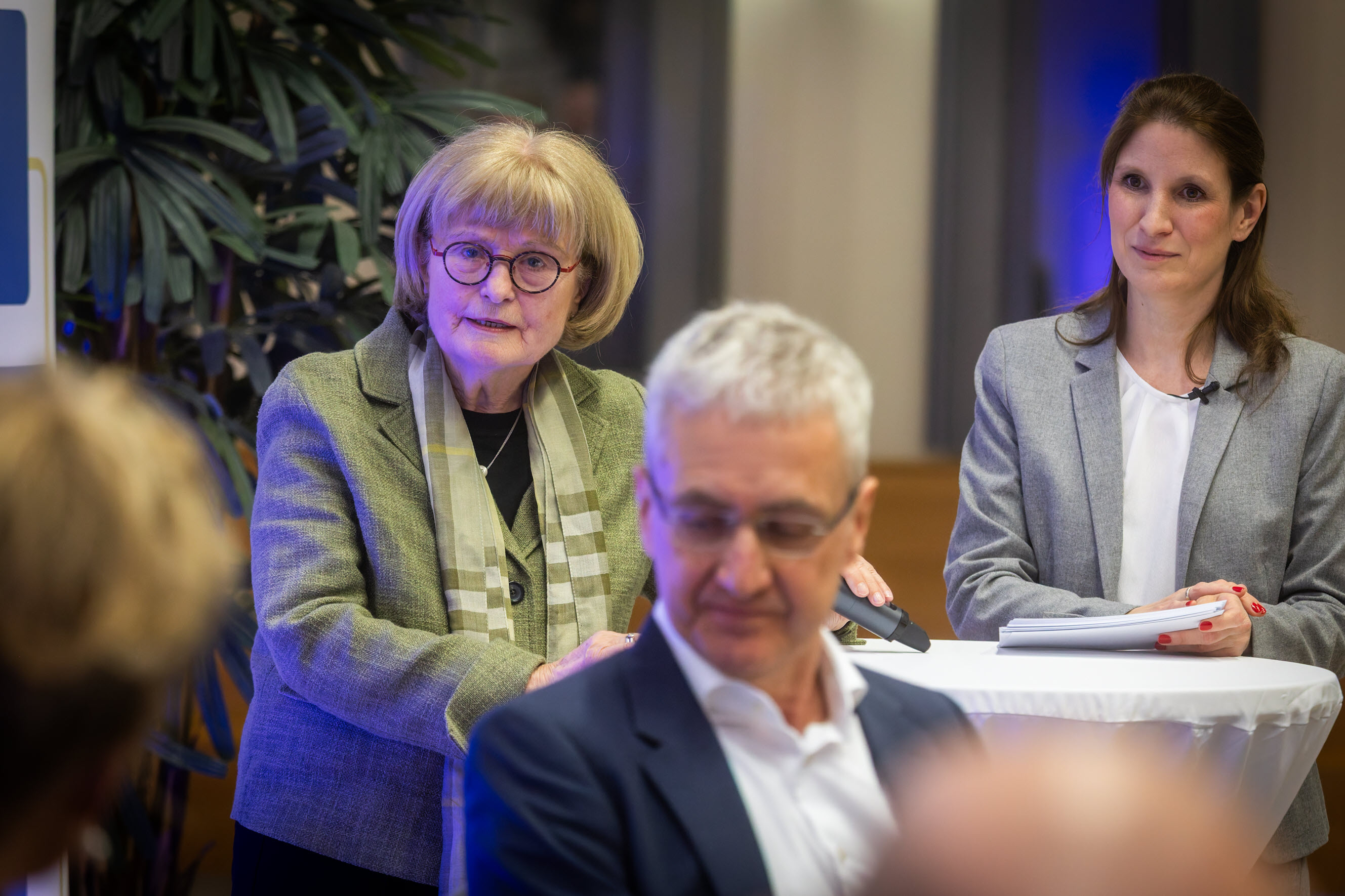 - Neben der Präzisionsmedizin standen auch zukünftige Entwicklungen im Fokus. Künstliche Intelligenz spielt dabei eine zentrale Rolle. Ministerin Brandes: „Wir müssen einen sicheren Datenraum schaffen, auf den die Onkologen der Universitätsmedizin zugreifen können, um die Vorteile der KI auch nutzen zu können. Zudem müssen wir Strukturen schaffen, in denen Mediziner und andere Naturwissenschaftler mit Informatik- und KI-Expertinnen und Experten eng zusammenarbeiten können. Und wir müssen das Vertrauen der Menschen in die Möglichkeiten der KI stärken.“