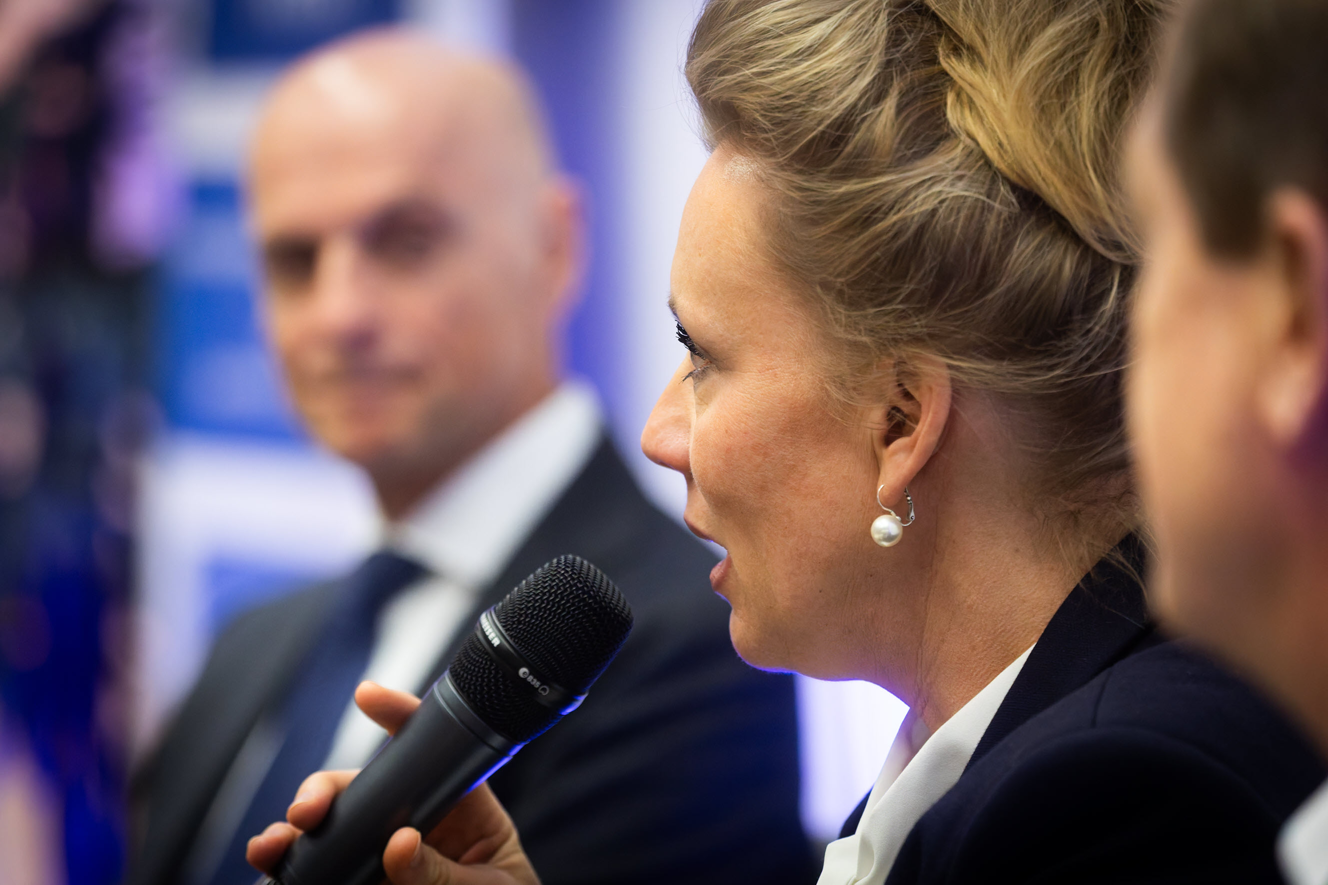 Im zweiten Teil des Abends standen chirurgische Innovationen im Mittelpunkt. Nach einem Video-Einspieler berichteten auf dem zweiten Podium Dr. Natalie Baldes (Thoraxchirurgin an der Universitätsmedizin Essen – Ruhrlandklinik) und Lungenkrebs-Patient Ralf-Bernd Weissfeld über moderne Operationsverfahren. Die Ärztin hatte ihn vor vier Wochen unterstützt durch einen Roboter gewebeschonend operiert. „Meine Diagnose hat mich erstmal komplett aus der Bahn geworfen“, so Weissfeld. „Aber heute geht es mir wieder gut – und ich bin schneller zurück im Alltag, als ich gedacht hätte. Sechs Tage nach meiner OP konnte ich schon nach Hause. Bereits nächste Woche geht es für mich in den Holland-Urlaub.“