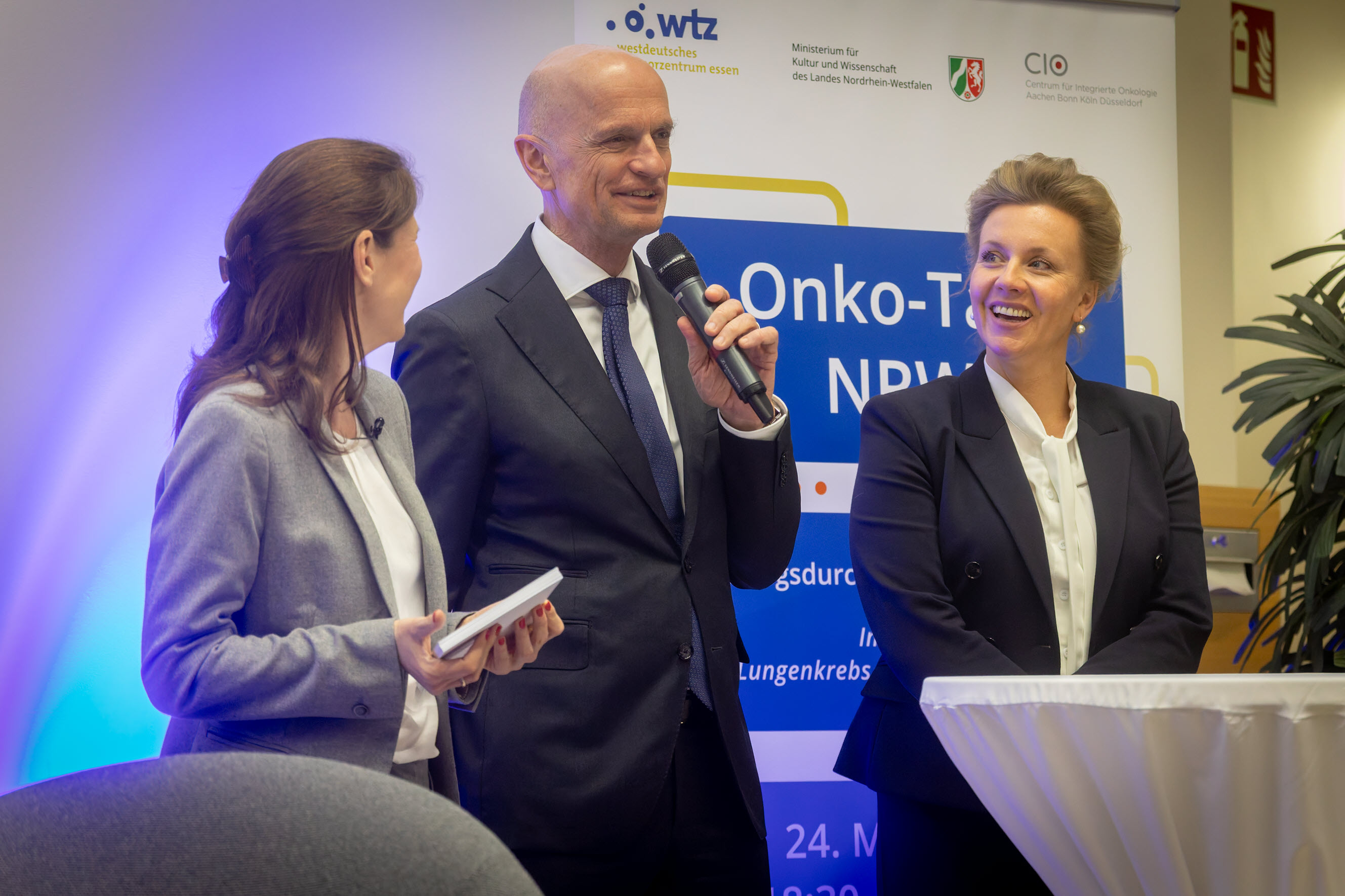 Zum vierten Mal haben das Centrum für Integrierte Onkologie (CIO) Köln und das Westdeutsche Tumorzentrum (WTZ) Essen – gemeinsam mit dem Ministerium für Kultur und Wissenschaft (MKW) des Landes Nordrhein-Westfalen – zum „Onko-Talk NRW“ eingeladen. Rund 150 Teilnehmerinnen und Teilnehmer kamen am 24. März 2026 im Lehr- und Lernzentrum der Universitätsmedizin Essen zusammen, um über aktuelle Entwicklungen in der Lungenkrebsmedizin zu diskutieren.