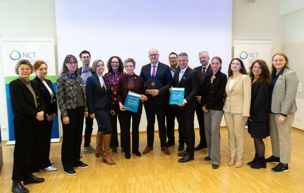 Am Weltkrebstag, 4. Februar 2026, besuchte Matthias Hauer, Parlamentarischer Staatssekretär bei der Bundesministerin für Forschung, Technologie und Raumfahrt sowie Vorsitzender des Strategiekreises der Nationalen Dekade gegen Krebs, das Nationale Centrum für Tumorerkrankungen (NCT) West. Neben einem Besuch verschiedener Einrichtungen vor Ort stand die Übergabe von zwei Förderbescheiden für eigenständige Forschungsvorhaben der Universitätsmedizin Essen im Rahmen der Nationalen Dekade gegen Krebs auf dem Programm: Mit zusammen rund 3,6 Millionen Euro fördert das Bundesministerium für Forschung, Technologie und Raumfahrt (BMFTR) die Projekte „I-CHECK-HEART“ und „BALANCE-ET“. Davon fließen rund 1,6 Millionen Euro an Essener Forschungsteams.